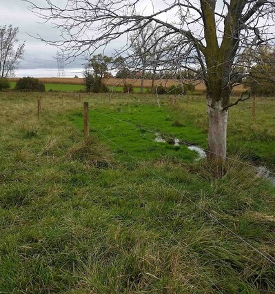 Approximately 4,520 feet of 3-strand high tensile fencing and 854 feet of Ramm Flex-fence was installed at Laural Harrington’s Farm. The installation of this fencing will help to keep approximately 18 acres of pasture for rotational grazing on the farm. This will ensure the farm has adequate forage for the animals during any type of weather situation, especially during time of extreme drought and extreme wetness. The fencing will provide exclusion of animals to the ditches and stream on the property, which flows into Black Creek. With the farm’s rotational grazing system and the installed fence practice, it is estimated from STEPL that 9.8 lbs. of nitrogen, 1.5 lbs. of phosphorus and 0.75 tons of sediment per year will be reduced to these sensitive areas.